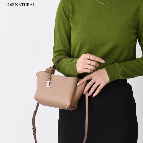 Adjustable and detachable shoulder strap. Detachable pendant with T Timeless Metal accessory. Metal snap hook and ring closure. Three compartments.