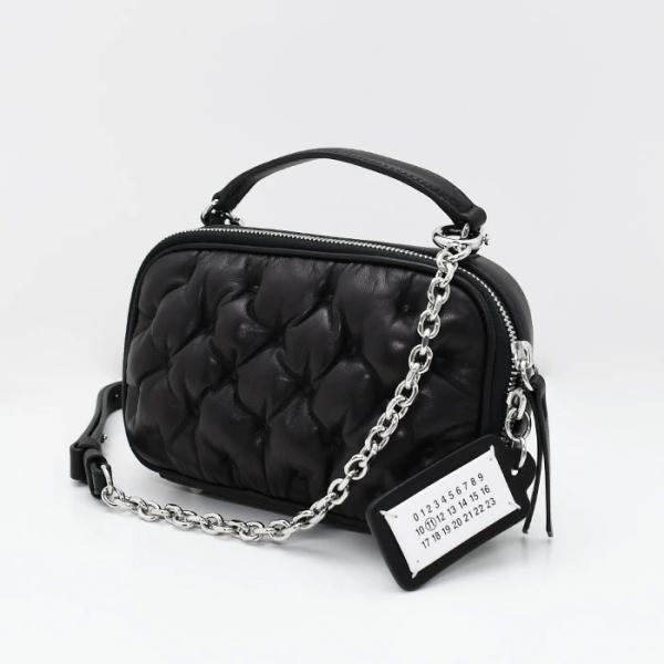 ・ジップクロージャー ・ナッパレザーのベルトバッグ ・トップハンドルとベルトストラップ、チェーンが付いたスタイル ・取り外しおよび長さ調整可能なチェーンショルダーストラップ ・ジッパープルにはナンバリング ロゴデザイン ・内側にロゴスタンプ ・内側にフラットポケット×1 ・ミニサイズの2018年春夏のショーでデビューした「グラム スラム」カメラベルトバッグ ・フランスのマルセイユで生まれた手縫いのキルト「マテラッセ」スタイルを模したキルティングデザイン ・付属品のミラー付き ・イタリア製 |