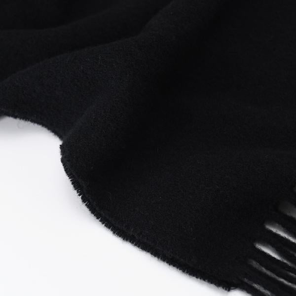 ・サテンステッチ刺繍のワンポイントロゴ ・軽くて暖かいウール素材 ・フリンジデザイン ・イタリア製 |